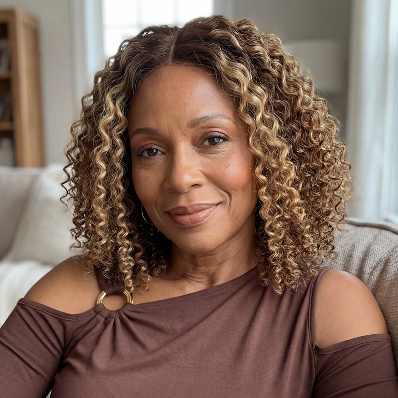 Item: Soul Lady Brown Hair With Honey Blonde Highlights Jerry Curly Bob 5x5 HD Lace Glueless Human Hair Wigs