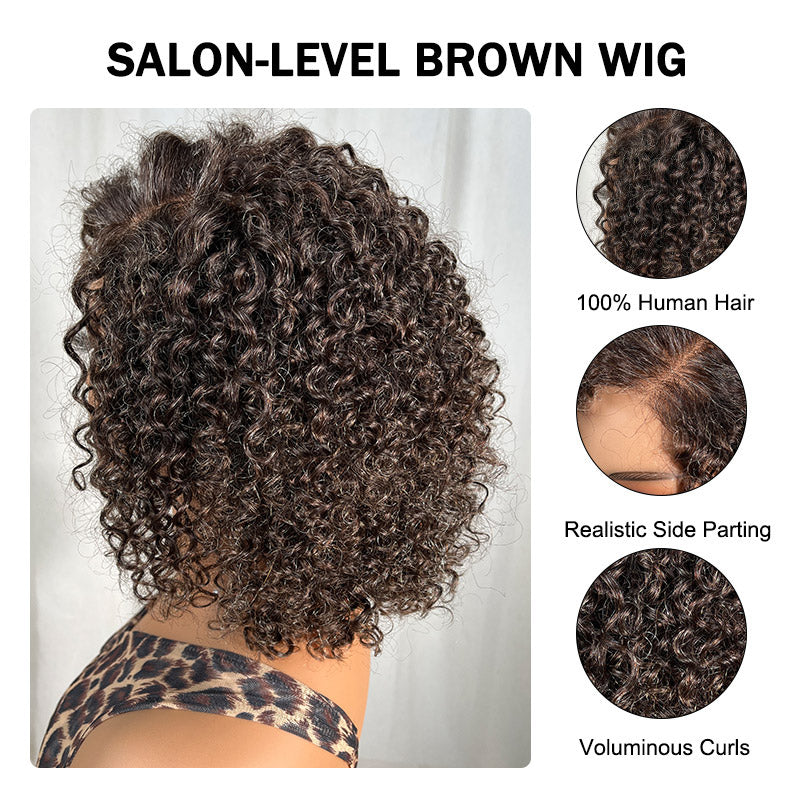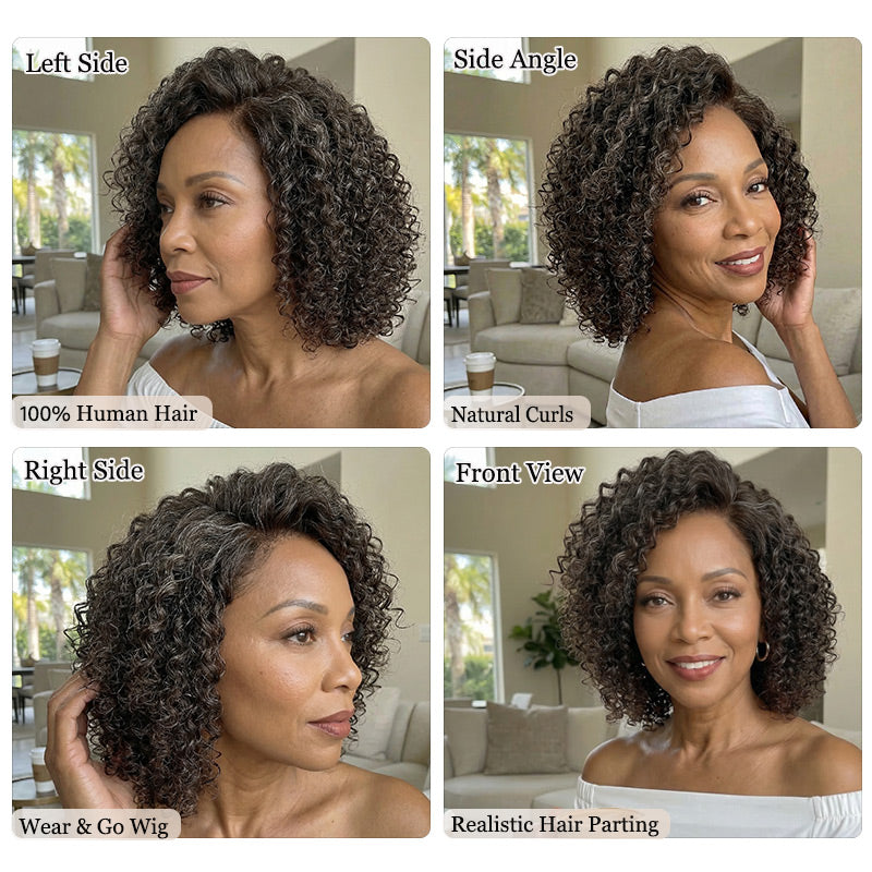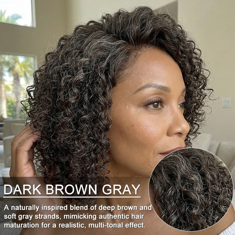 Lynn | Wear & Go Jerry Curly Wig - Dark Brown with Gray Blend 5x5 HD Lace Glueless Human Hair