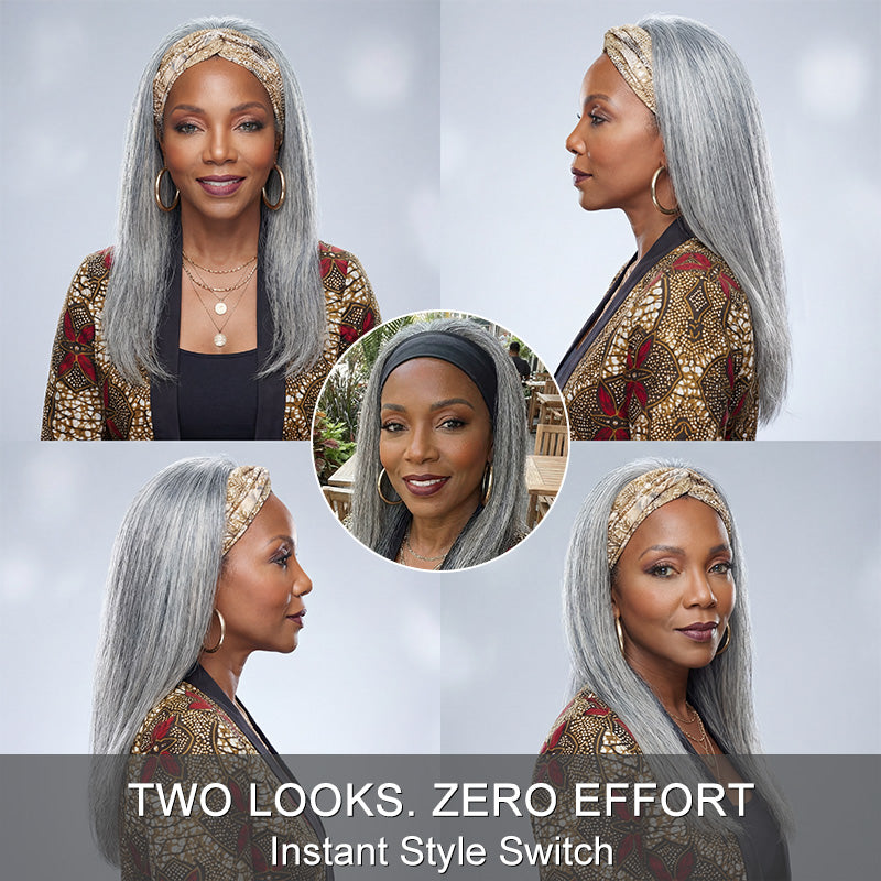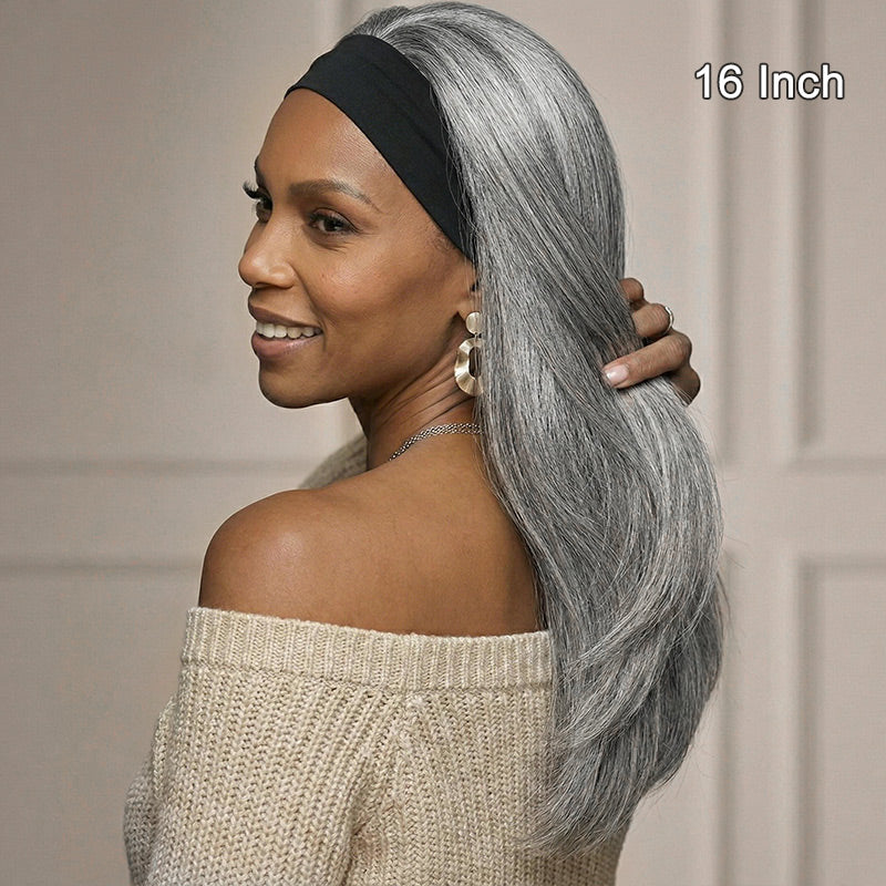 Marian | Silver Gray Straight Hair Headband Wig Real Human Hair Salt & Pepper Glueless Wigs For Women