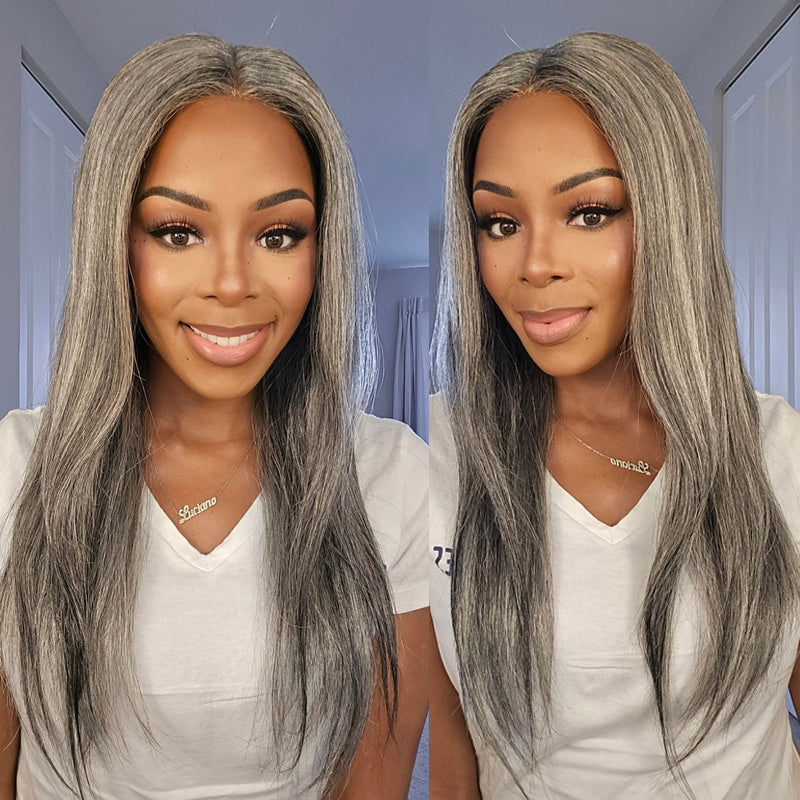 Timeless 9x6 Lace Frontal Wigs Standard Salt And Pepper Human Hair Glueless Wigs