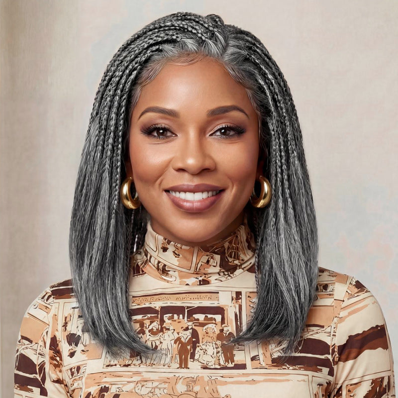 Salt & Pepper Boho Braid Wig Straight Hair 13x4 Full Frontal Wig - Half Cornrow, Half Loose Style