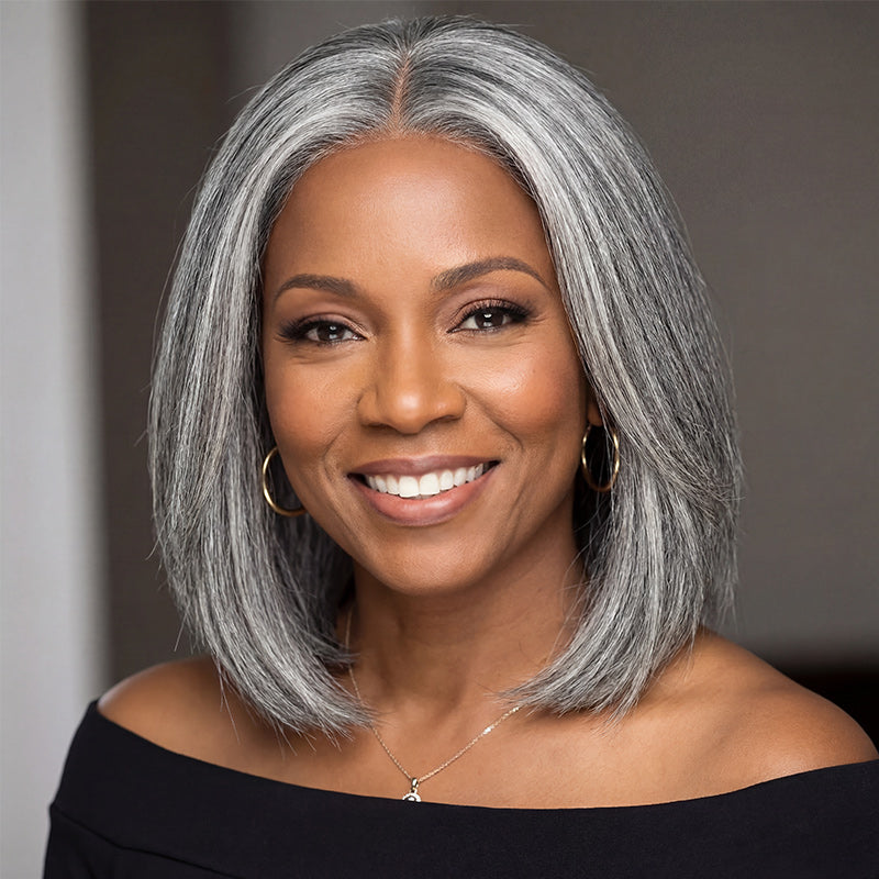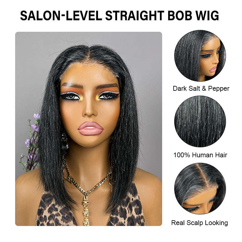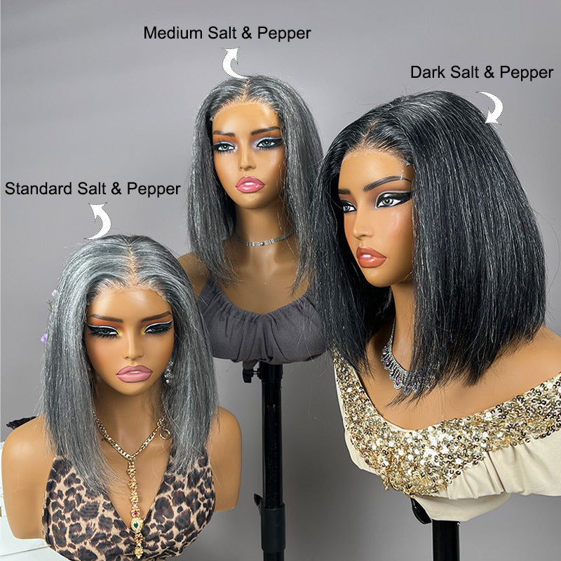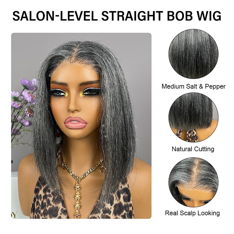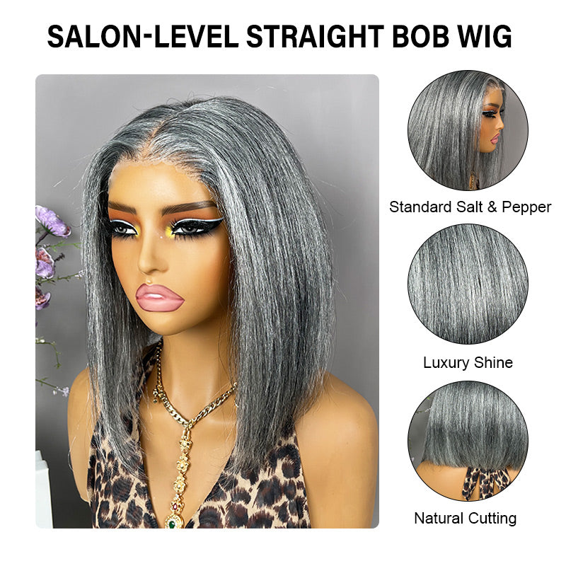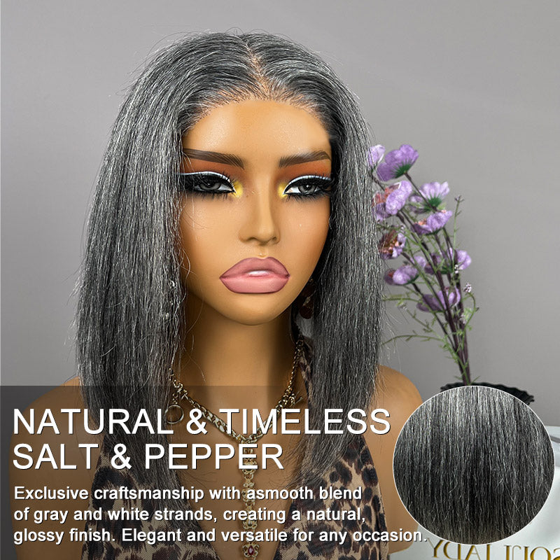 - Item: Soul Lady Classic Hairstyle Salt And Pepper Straight Bob For Elegant Seniors Wear go Glueless Lace Wigs For Mom