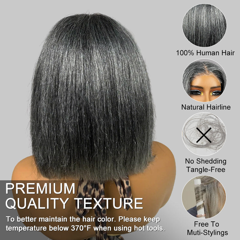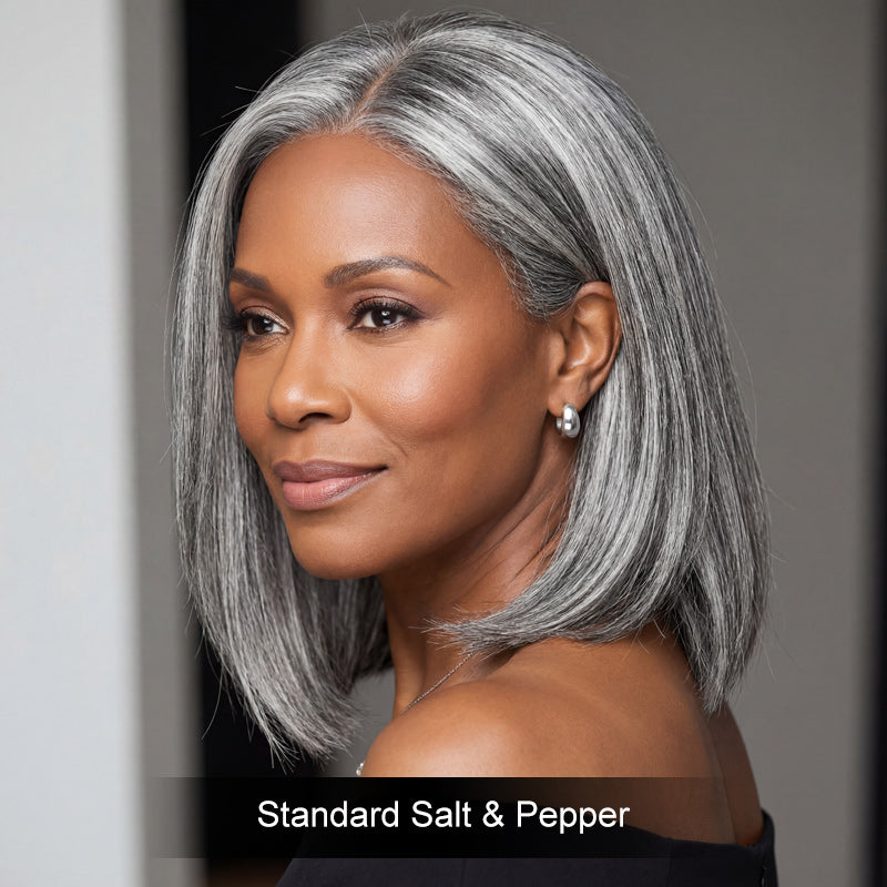 Victoria | Classic Women's Hairstyle Salt and Pepper Straight Bob Real Human Hair Wear Go Glueless Lace Wigs