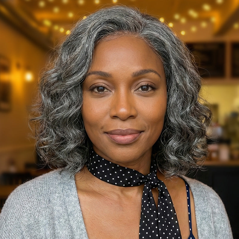 - Item: Seniors Salt and Pepper Loose Wave Bob Real Human Hair HD Lace Wigs For Mom