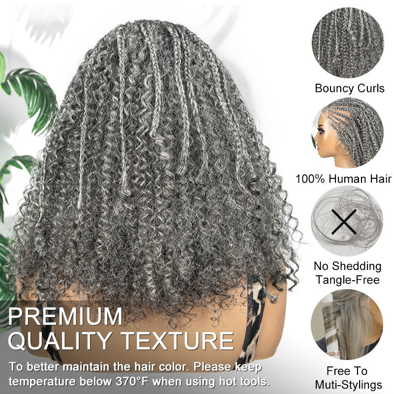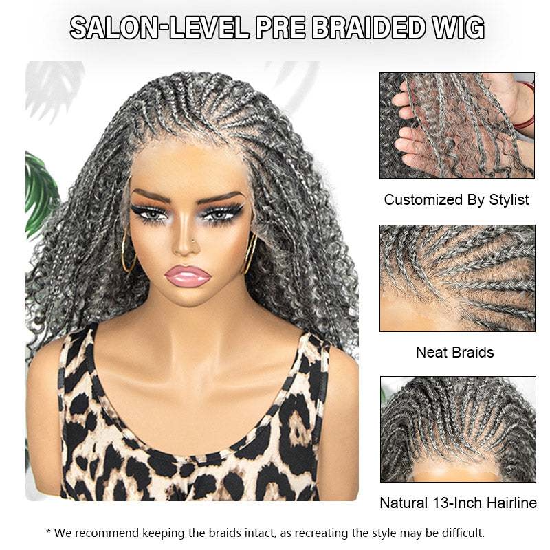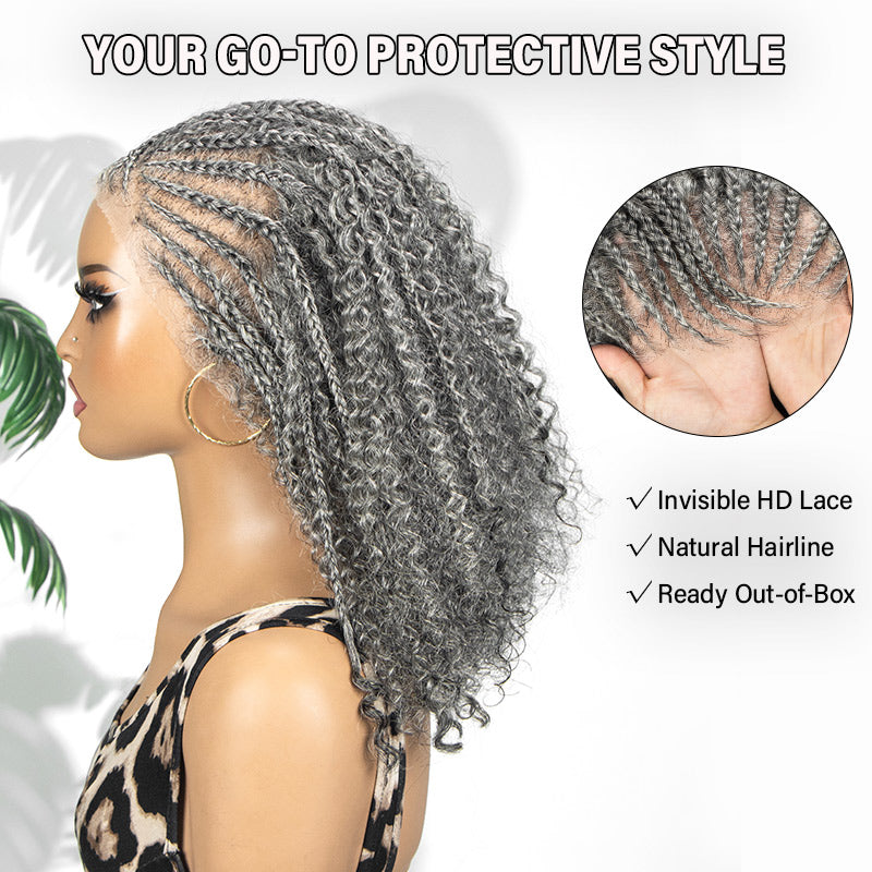 Silver Luxe Gray Pre Braided Jerry Curly 13x4 HD Lace Full Frontal Wig Salt And Pepper Human Hair Wig For Women
