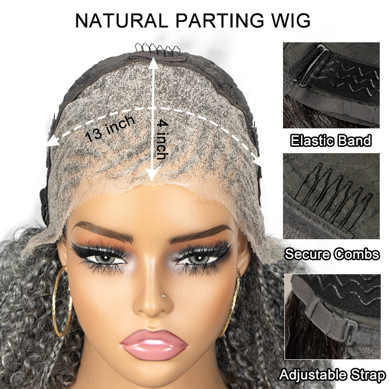• Item: Soul Lady Silver Grey Pre Braided Jerry Curly 13x4 HD Lace Full Frontal Human Hair Wig for Seniors