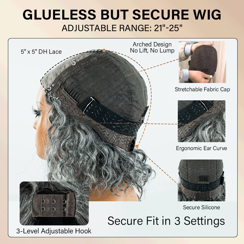 Cap Construction: Stretchable wig cap with 3 built-in combs, adjustable straps, elastic band, and three-level hook settings for a secure, customizable fit.