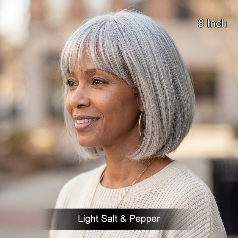 Vivian | Chic Salt & Pepper Straight Bob Wig With Bangs Real Human Hair Glueless Wigs For Seniors
