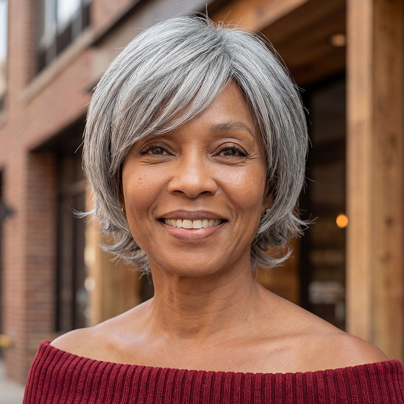 Blended gray and black tones mimic the natural graying process for a dignified, elegant look.