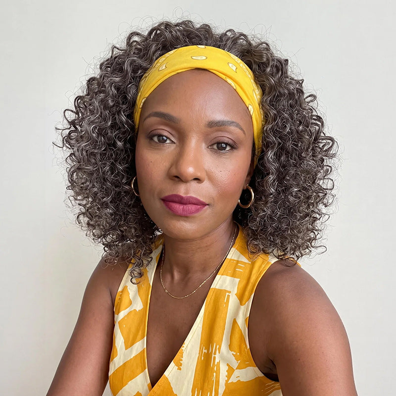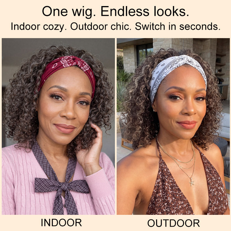 Alicia | Ready To Go Dark Brown Mixed Gray Water Wave Headband Human Hair Wig for Mature Women
