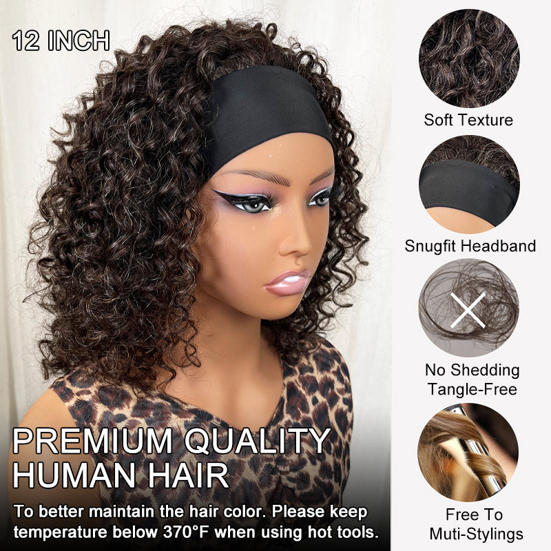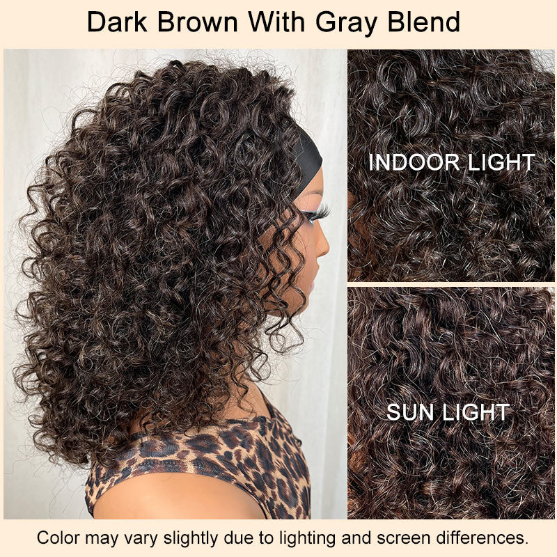 Item: Dark Brown Mixed Gray Water Wave Headband Human Hair Wig