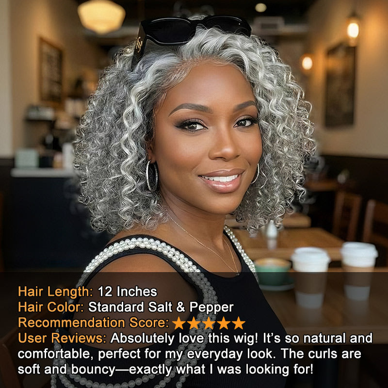 Zuri | Seniors Salt And Pepper Jerry Curly Bob Real Human Hair Handmade 5x5 HD Lace Wigs For Mom