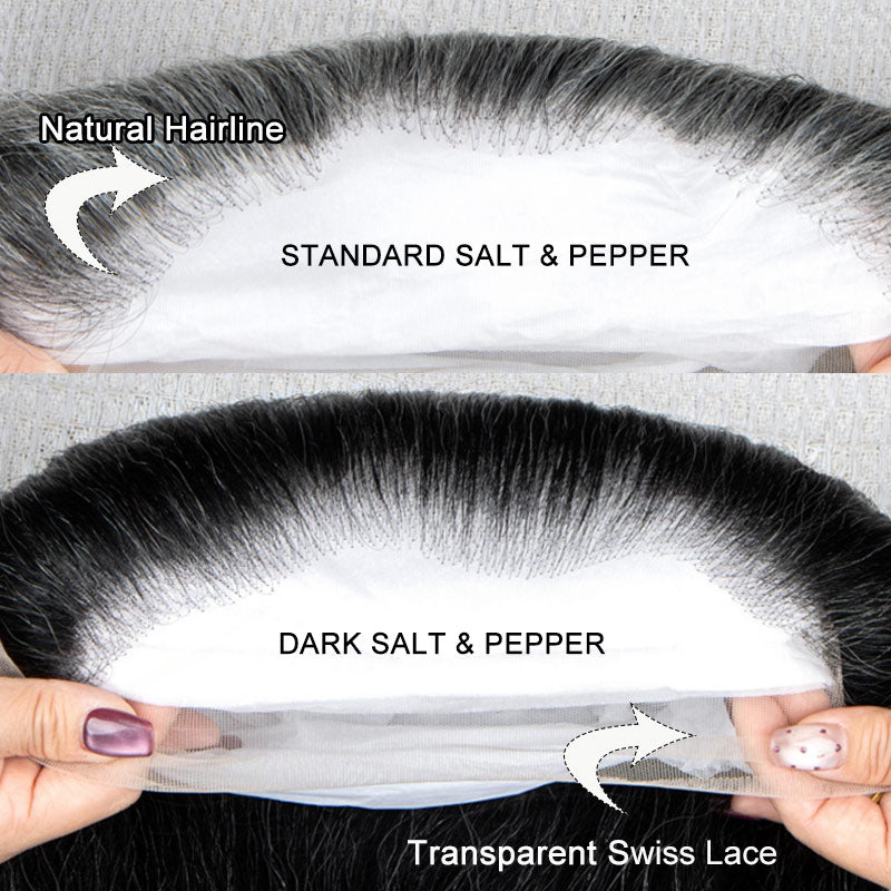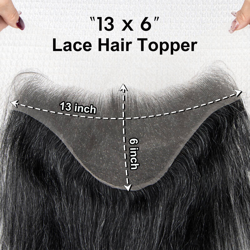 - Product Type: 13x6 Invisible Swiss Lace Full Frontal Salt and Pepper Human Hair Topper for Women