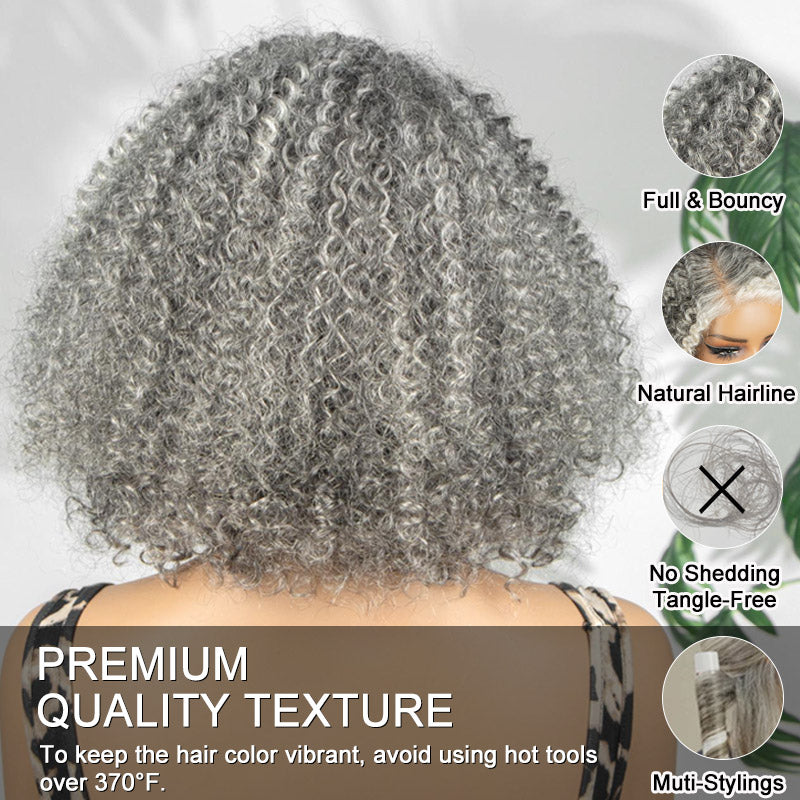 Zuri | Seniors Salt And Pepper Jerry Curly Bob Real Human Hair Handmade 5x5 HD Lace Wigs For Mom