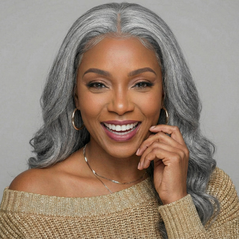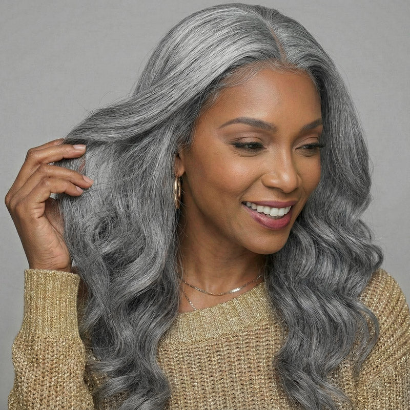 Sienna | Silver Luxe Gray 13x4 HD Lace Full Frontal Wig Body Wave Human Hair Salt And Pepper Wig For Older Women