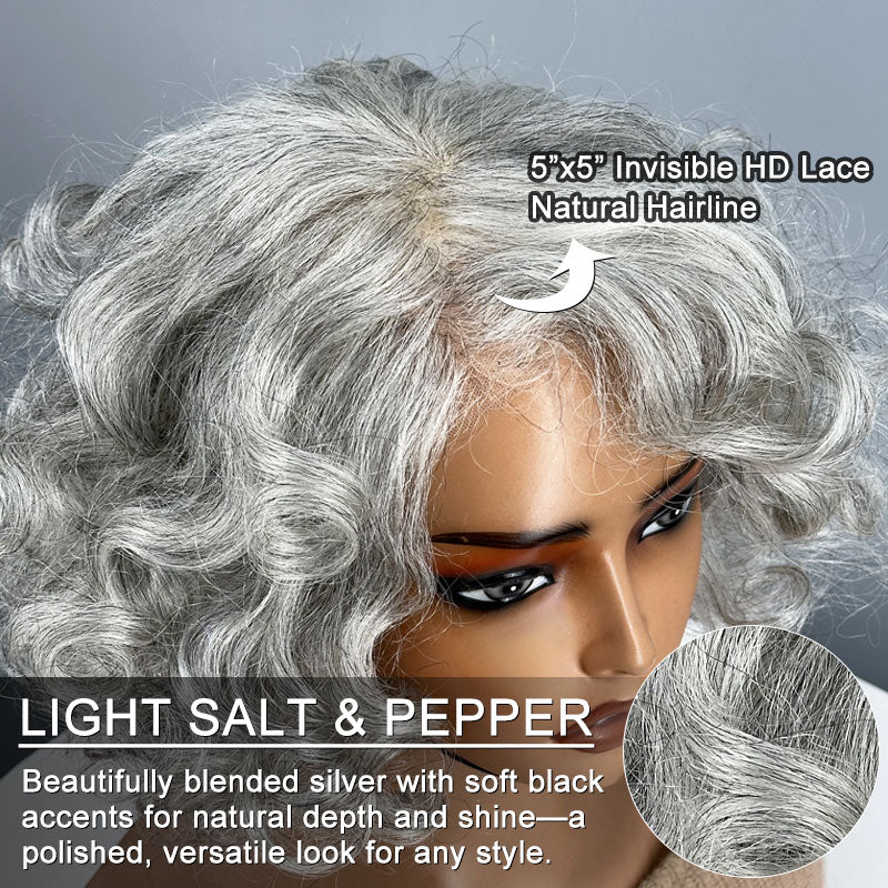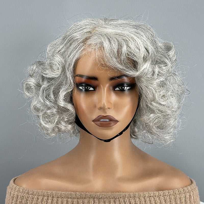 • Item: Light Salt & Pepper Color Human Hair Bob Wig For Seniors