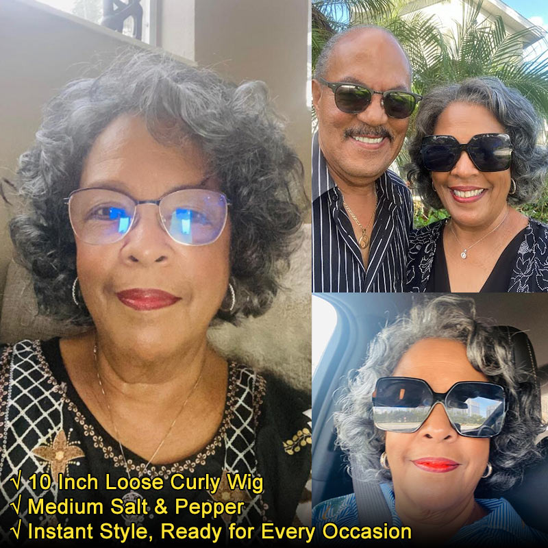 Versatile Salt & Pepper Big Curly Bob | Wear Go Glueless Human Hair Wig for Older Women