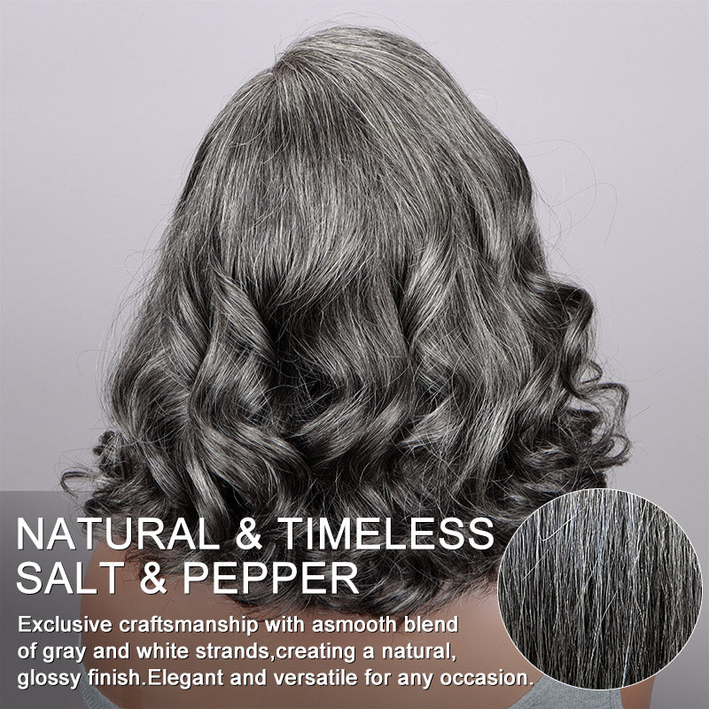 - Item: Seniors Salt and Pepper Loose Wave Bob Real Human Hair HD Lace Wigs For Mom