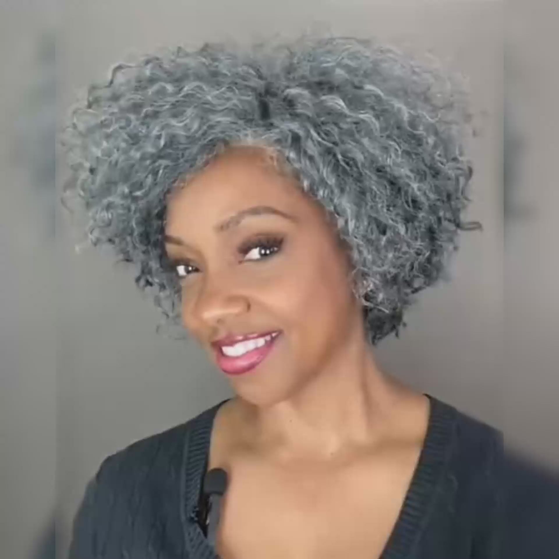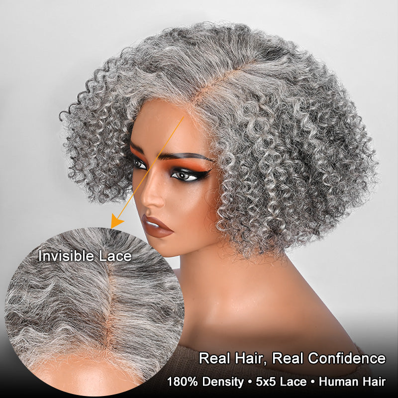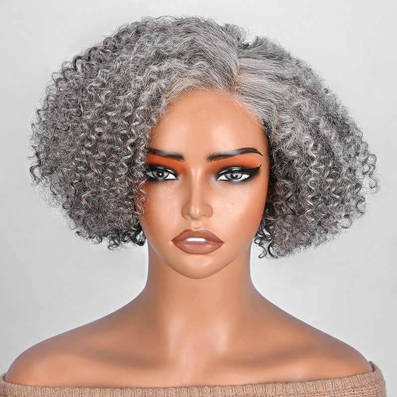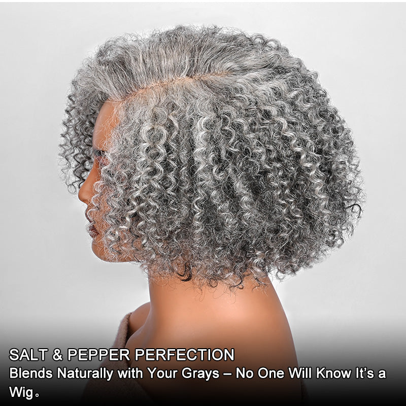 Ruby | Short Jerry Curly Gray Wig | Real Salt & Pepper Human Hair Glueless Lace Wigs Mature & Stylish