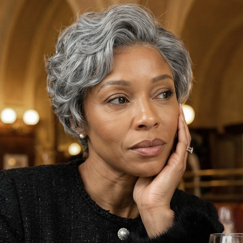 - Item: Custom Short Tapered Pixie Haircuts Salt & Pepper Color Human Hair Wigs